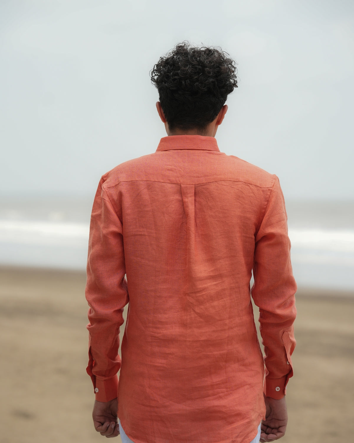 Coral Orange Pure Linen Solid Shirt